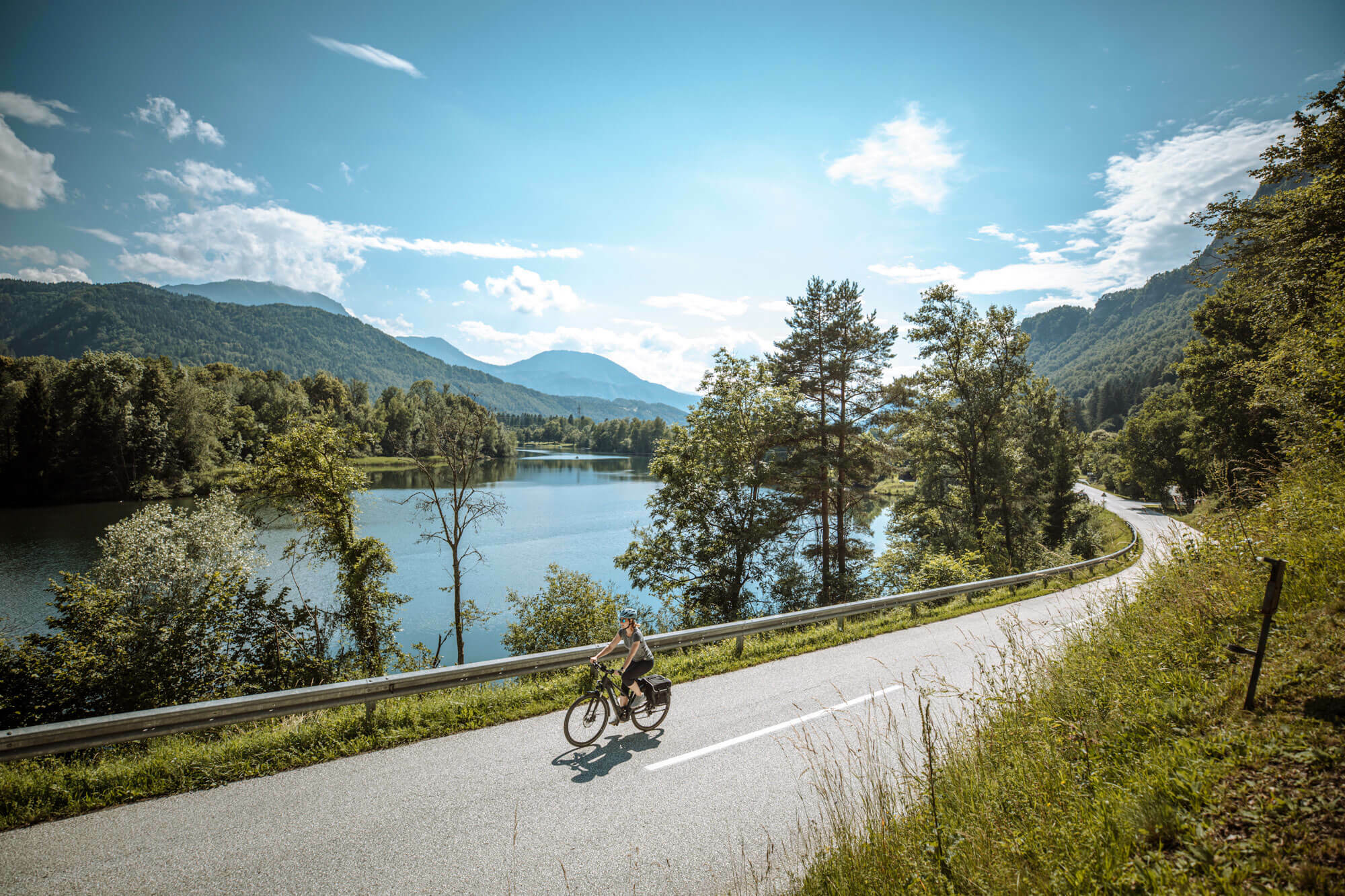 Přeskočíme dál až na zhruba padesát kilometrů vzdálené Weißensee. Musíte překonat jedno z mála stoupání okruhu, protože tohle jezero je skoro o pět set metrů výše! Je také nejvýše položeným z velkých korutanských jezer. V létě je nutné jeho část přejet lodí, protože silnice tady končí i pro cyklisty.